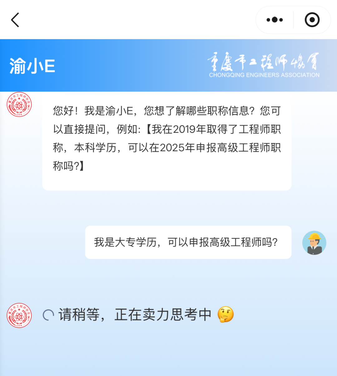 重庆工程师的智能职称咨询助手「渝小E」开始试运行